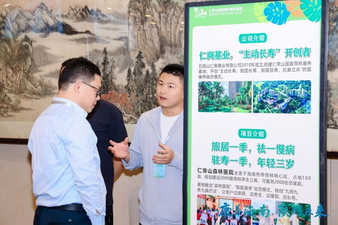 会议期间,仁帝山设立了咨询展位,通过宣传易拉宝、现场讲解等形式,向与会嘉宾及客商展示了仁帝山的地理位置、配套设施及产品优势。并重点推介了仁帝山长寿管理的特色服务与成果,吸引了现场大量关注。