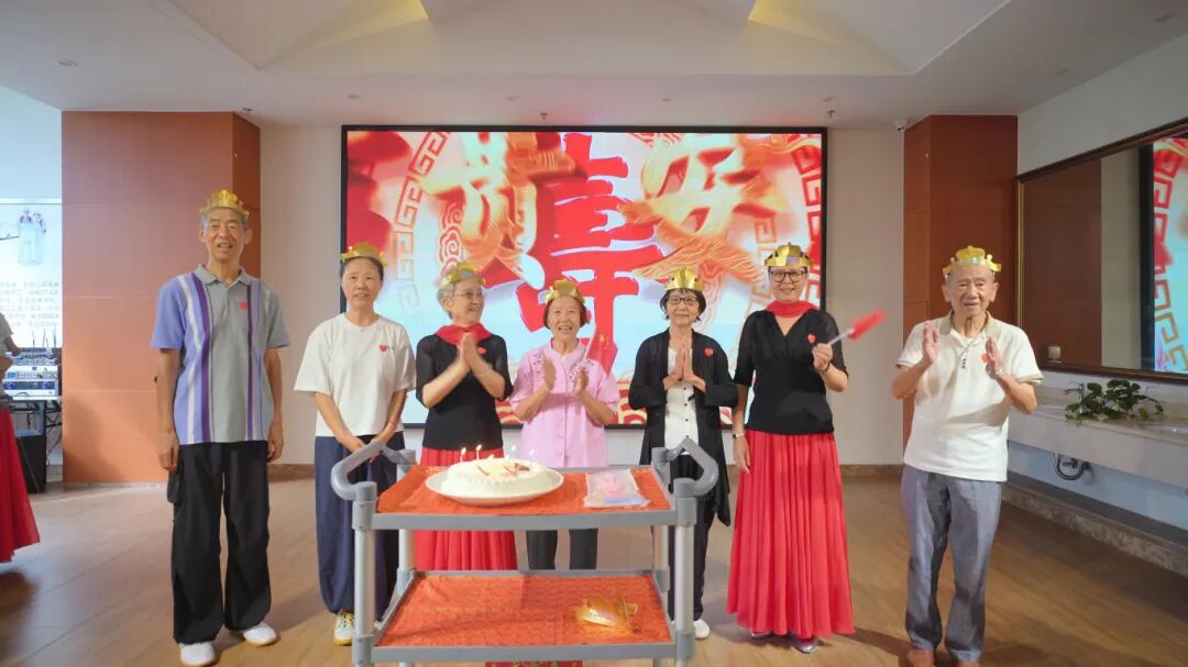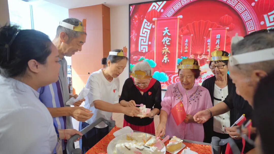 在这家国同庆的时刻,我们也迎来了7位寿星的生日。随着《生日快乐》的祝福音乐响起,叔叔阿姨们吹灭蜡烛、切开蛋糕,在场的每个人脸上都洋溢着幸福的笑容,一同为寿星们送上最真挚的祝福。