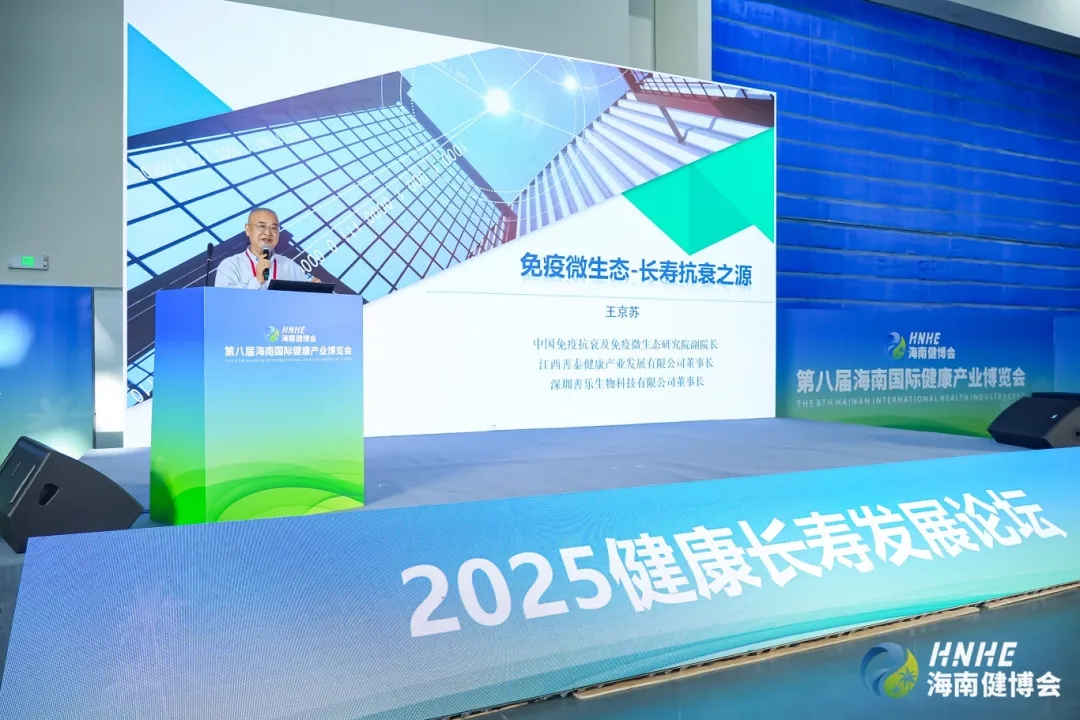 中国免疫抗衰及免疫微生态研究院、江西善泰健康产业发展、深圳善乐生物科技有限公司董事长王京苏作《免疫微生态——长寿抗衰之源》的主题演讲,从专业视角讲述了体内微生态平衡在长寿抗衰中的核心作用。