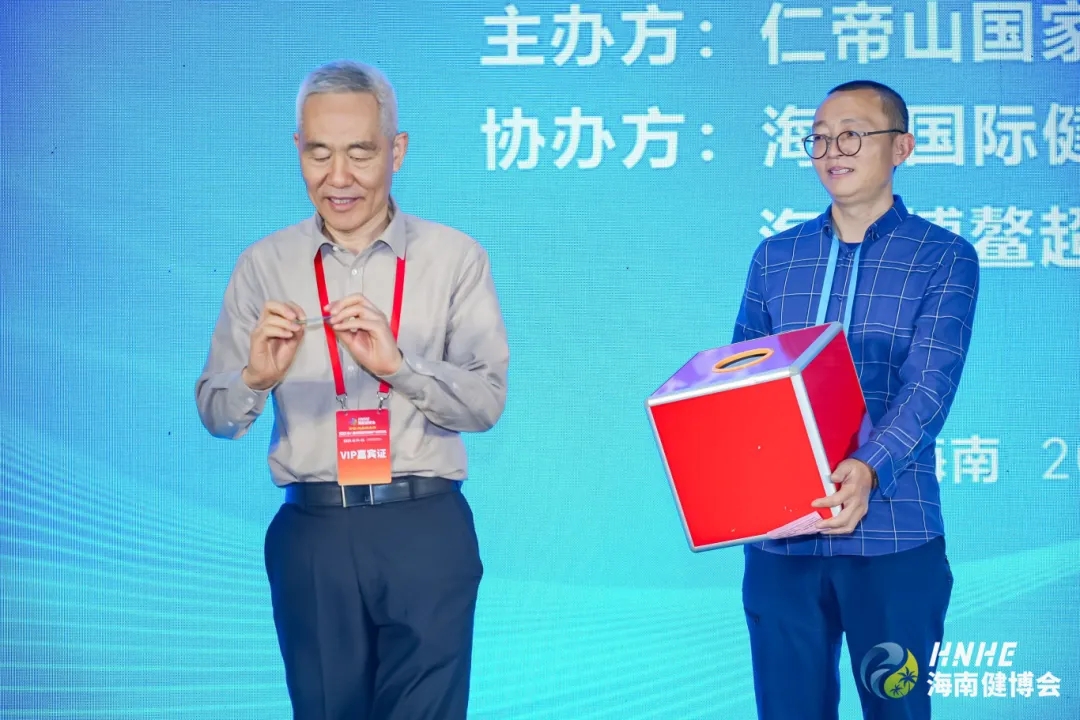 互动环节中,与会嘉宾登台抽奖,为现场观众送出仁帝山长寿酒等特色健康好礼。