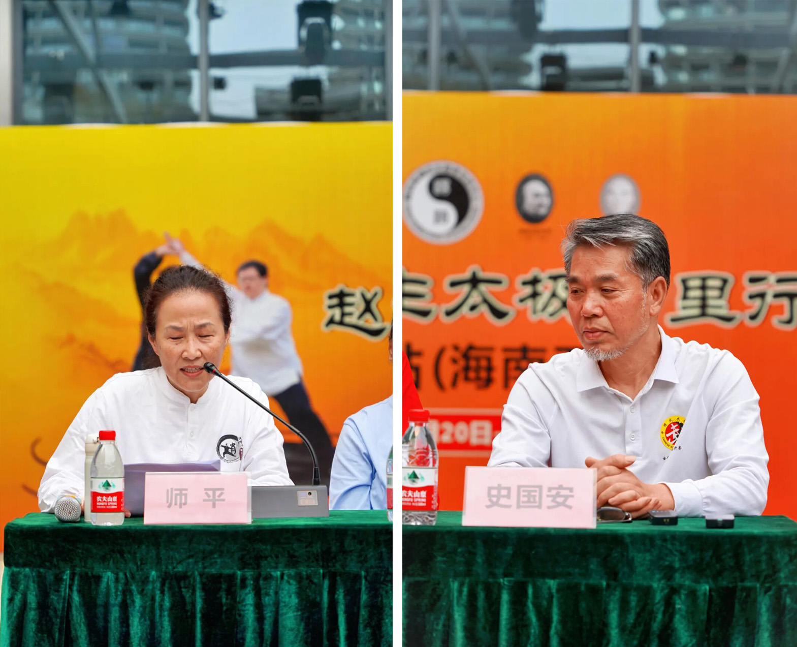 此次开班仪式上,五指山市文旅局副局长阮柯柏、杨氏太极拳第六代亲族传人赵亮、赵幼斌先生夫人唐成玉、赵幼斌先生弟子史国安、五指山市鸿雁“候鸟”人才工作站长左兴武、五指山市鸿雁“候鸟”人才工作站太极团团长师平莅临现场。