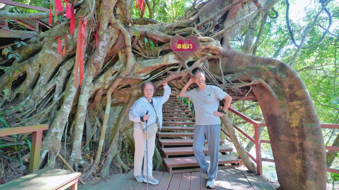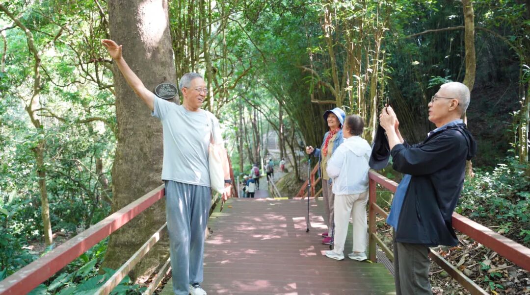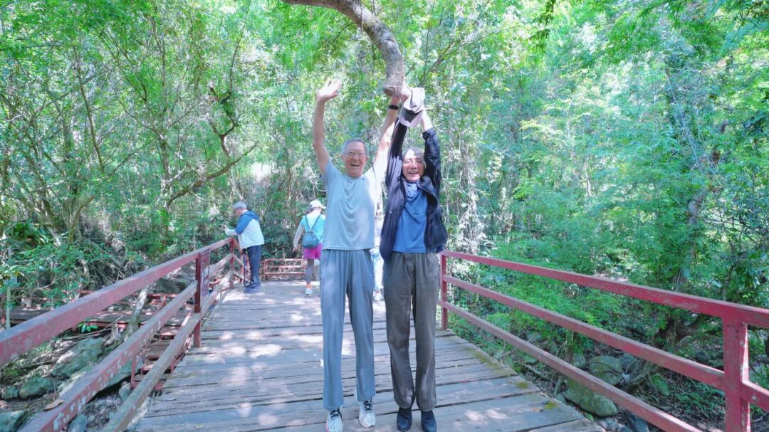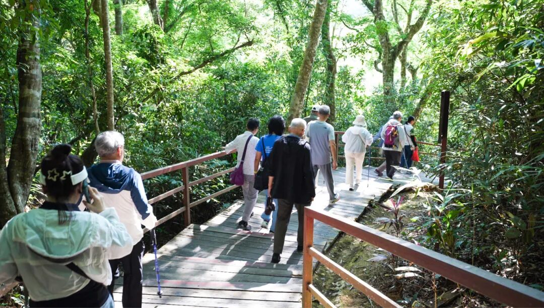 叔叔阿姨们漫步在热带雨林间